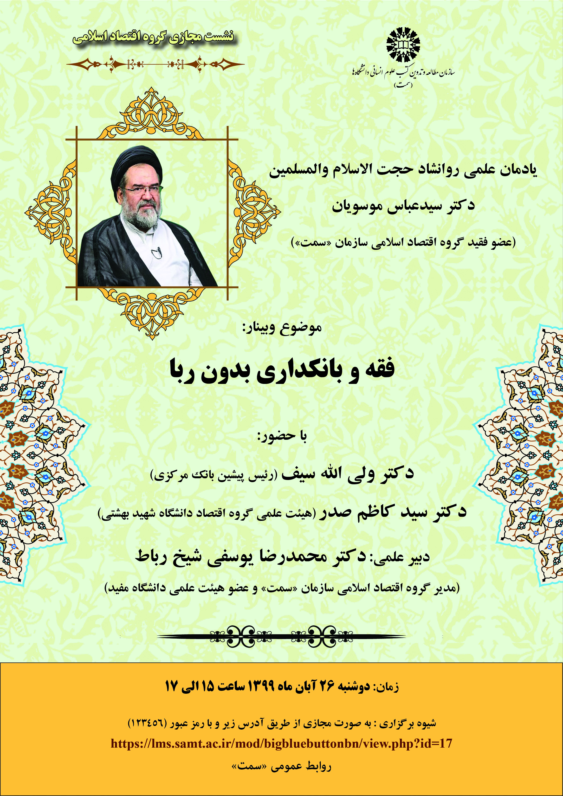 این وبینار که یادمانی علمی مرحوم حجت السلام سیدعباس موسویان عضو فقید گروه اقتصاد اسلامی «سمت» نیز محسوب میشود با حضور: