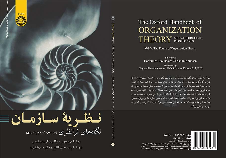 جلد پنجم کتاب «نظریه سازمان، نگاه‌های فرانظری» ویراسته هریدیموس سوکاس و کریستین نودسن توسط سید حسین کاظمی و حسن دانائی فرد ترجمه و به همت سازمان سمت با قیمت ۱۶ هزار تومان منتشر شد.