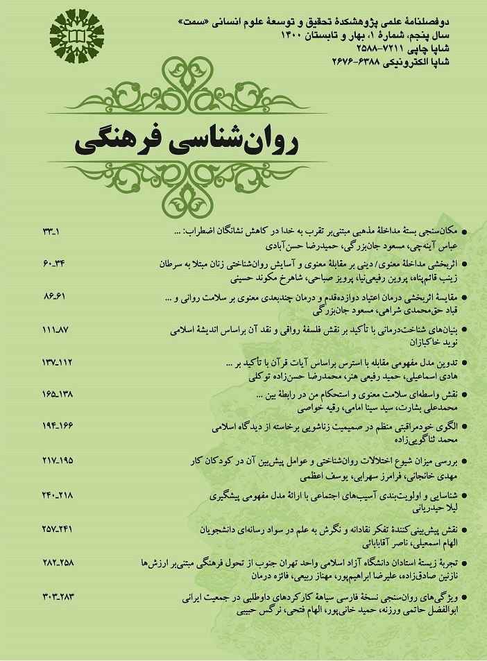 -مکان‌سنجی بسته مداخله مذهبی مبتنی بر تقرب به خدا در کاهش نشانگان اضطراب: مطالعه تک‌جنسیتی با طرح تک‌آزمودنی- خط پایه چندگانه (عباس آینه‌چی؛ مسعود جان‎‌بزرگی؛ حمید رضا حسن آبادی)