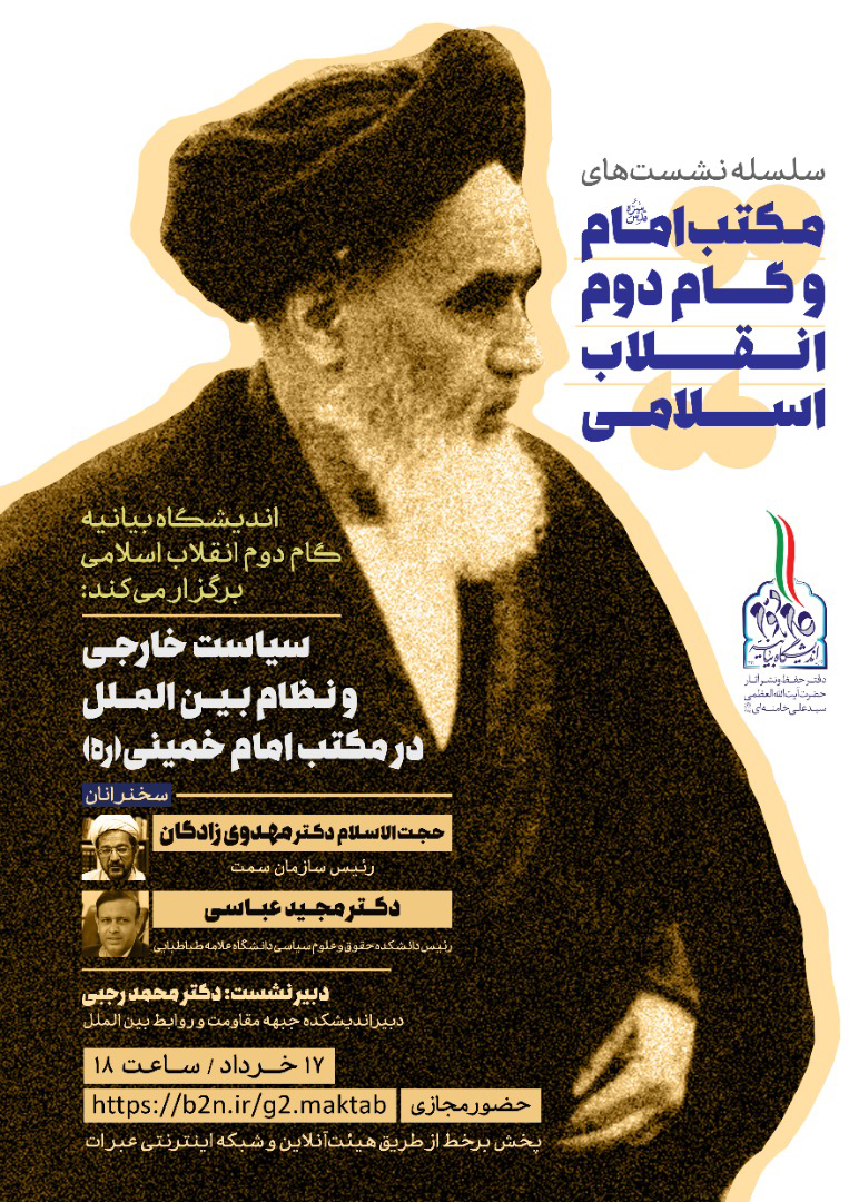به گزارش روابط عمومی سازمان «سمت»، به همت اندیشگاه بیانیه گام دوم انقلاب اسلامی، سلسله نشست‌های مکتب امام و گام دوم انقلاب اسلامی، به مناسبت ایام رحلت جانگداز رهبر کبیر انقلاب اسلامی از 9 تا 18 خردادماه برپا گردید. در نهمین نشست از این سلسله نشست‌ها، نشست سیاست خارجی و نظام بین‌الملل در مکتب امام خمینی(ره) با حضور حجت الاسلام والمسلمین داود مهدوی‌زادگان رئیس سازمان «سمت» و دکتر مجید عباسی رئیس دانشکده حقوق و علوم سیاسی دانشگاه علامه طباطبایی و با دبیری دکتر محمد رجبی دبیر اندیشکده جبهه مقاومت و روابط بین‌الملل اندیشگاه بیانیه گام دوم انقلاب اسلامی، در روز سه‌شنبه 17 خردادماه برگزار شد که در گزارشی از این نشست ارائه می‌شود.